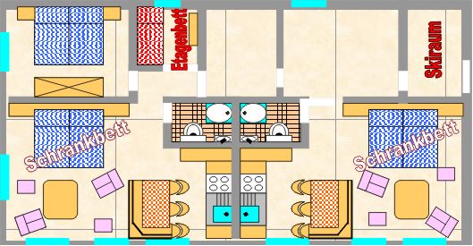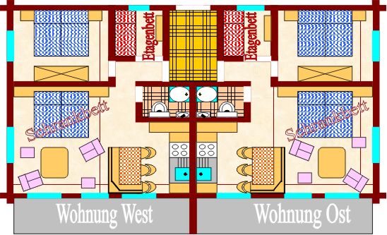 | Das Chalet Moosfluh liegt an ruhiger und sonniger Lage östlich der Riederalp. Im Winter ist der Skilift Moosfluh (Gondelbahn) bequem auf den Skiern erreichbar. Das Chalet Moosfluh hat 3 Wohnungen und ein Studio bestehend aus Küche- Wohn- Esszimmer mit Schrankbett, ein Doppelzimmer ein Kinderzimmer mit Kajütenbetten, Farb TV, Dusche WC. | ![]() |